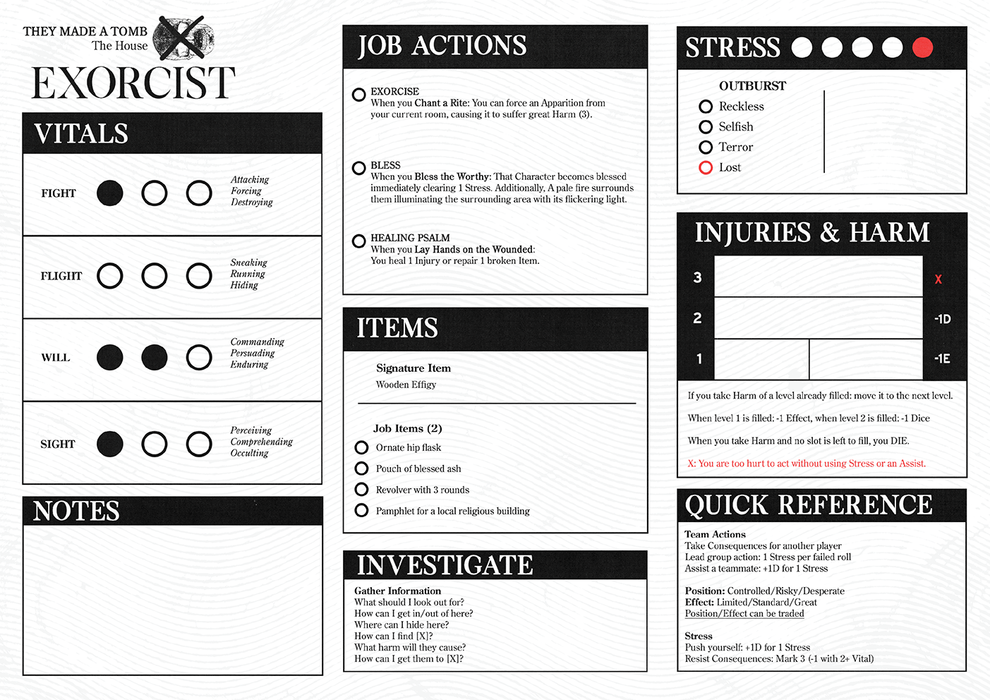 They Made a Tomb is a survival horror RPG for 3-5 people based on TEETH (Night of the Hogmen) and Blades in the Dark.
